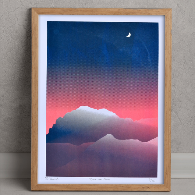 Sérigraphie 2 couleurs du la Barre des Écrins format A3 sur papier Paint On.