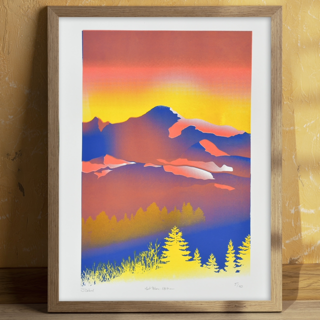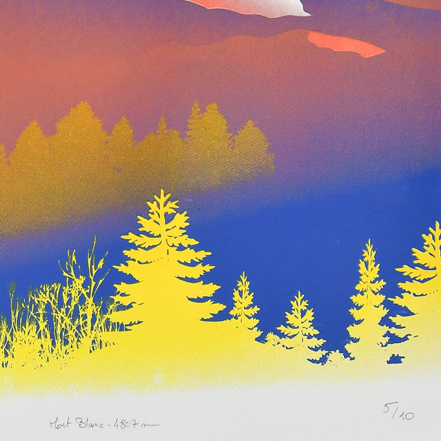 Sérigraphie 3 couleurs du Mont Blanc format 50x70 cm sur papier d’art Fabriano.
